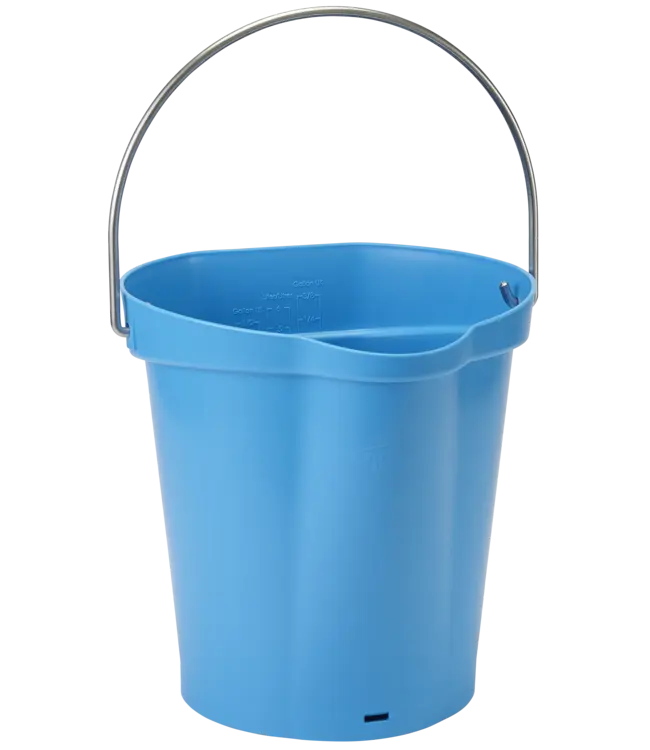 Ce seau de 6 litres très résistant convient au nettoyage et au stockage de denrées alimentaires. Grâce à son large bec verseur, il ne goutte pas. Il comporte une poignée moulée à sa base et une anse en acier inoxydable solide pour la prise en main. Il est également gradué avec diverses unités de mesure. Son bord plat évite de le renverser et améliore l’ergonomie lorsqu’il est rempli. Il a son propre support mural spécifique, réf. 16200, pour le ranger hygiéniquement.